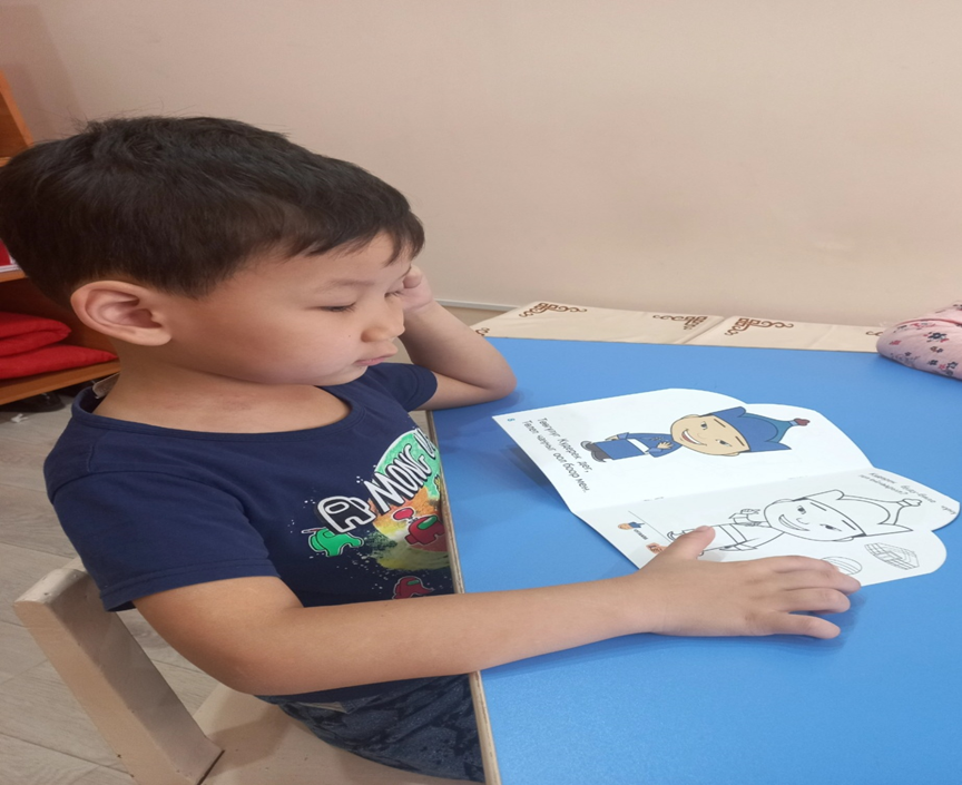 Уруглар: Күдерек ном номчуп турар.